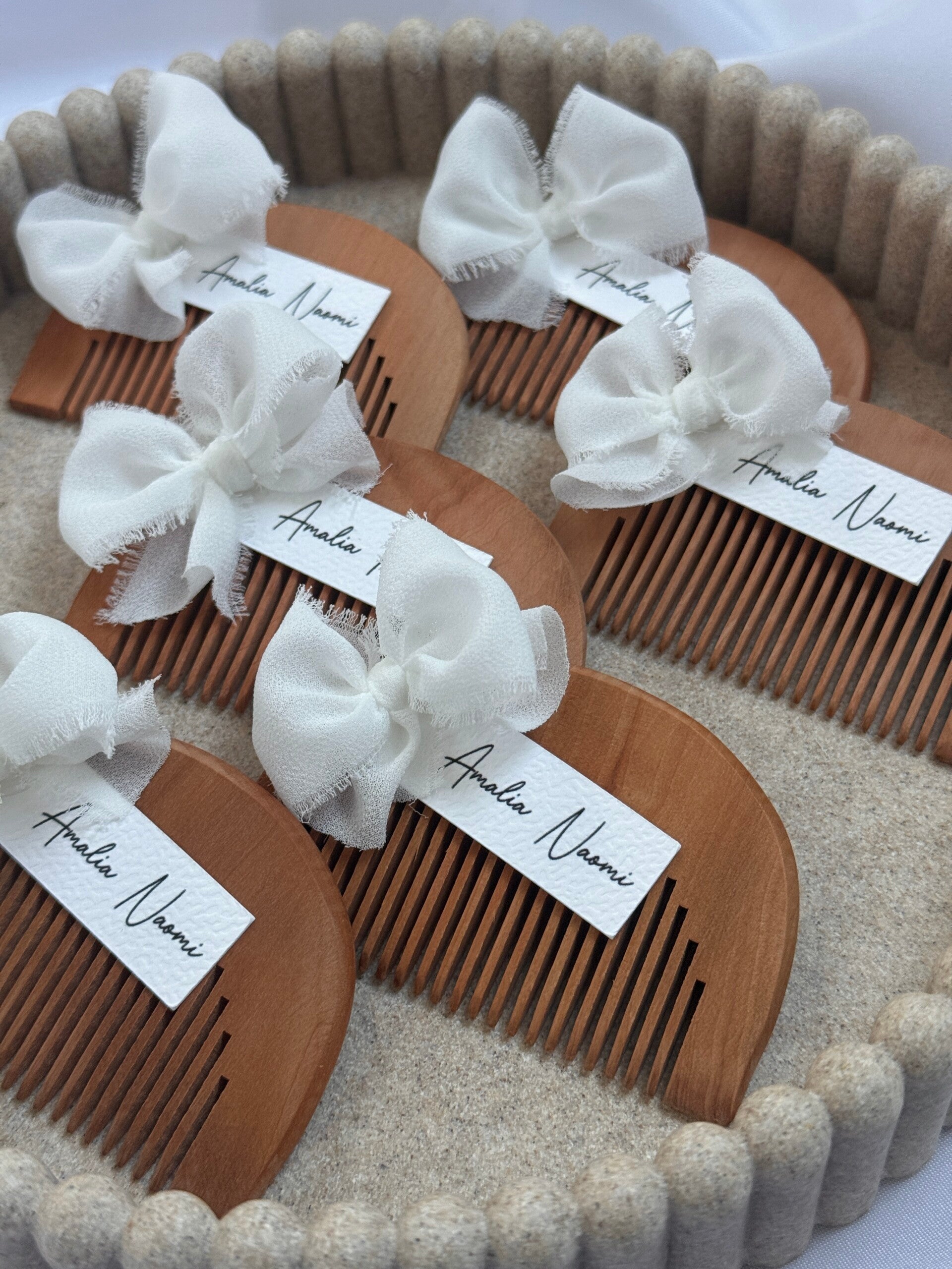 Deze houten kammetjes zijn een stijlvol en persoonlijk bedankje om jouw bijzondere moment te herinneren.